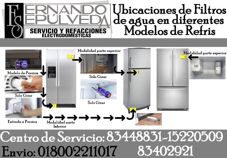 DISTINTOS TIPOS DE COLOCACION DE FILTROS EN REFRIGERADORES DEPENDIENDO MODELO Y MARCA